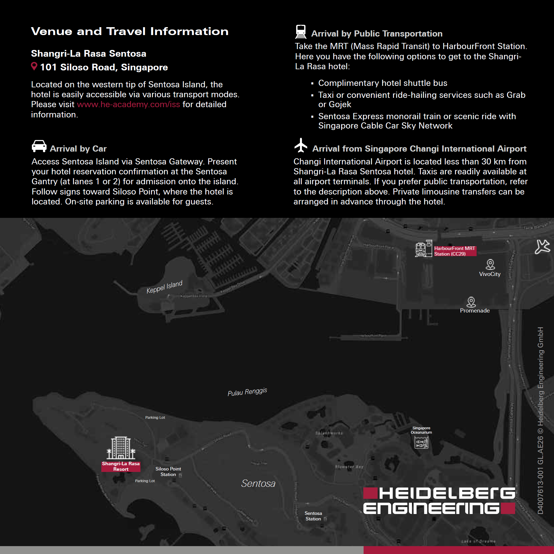 Changi International Airport is located less than 30 km from Shangri-La Rasa Sentosa hotel. Taxis are readily available at all airport terminals. If you prefer public transportation, refer to the description above. Private limousine transfers can be arranged in advance through the hotel, click here for more information and booking.