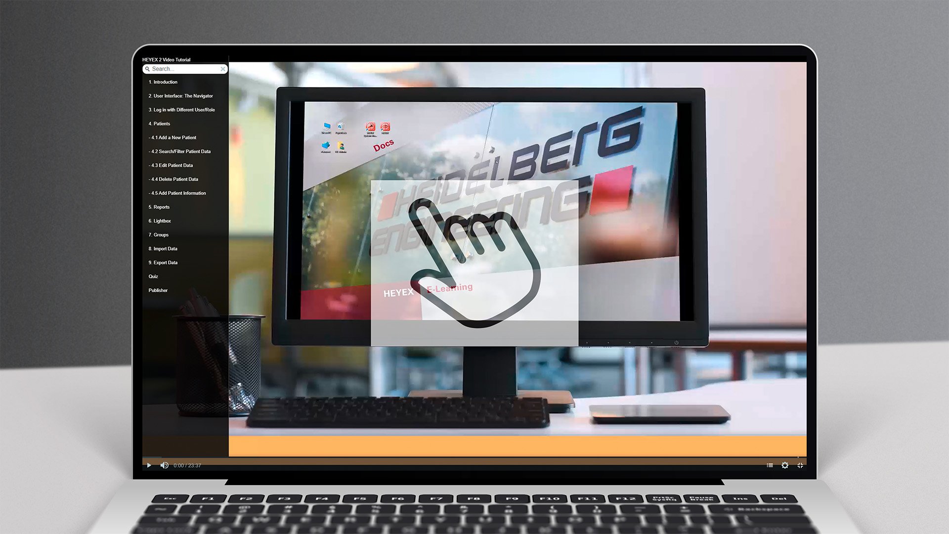 Alle Grundfunktionen werden in einem Video-Tutorial erklärt. Entdecken Sie HEYEX 2! Wir empfehlen, das Tutorial im Vollbildmodus anzusehen.
