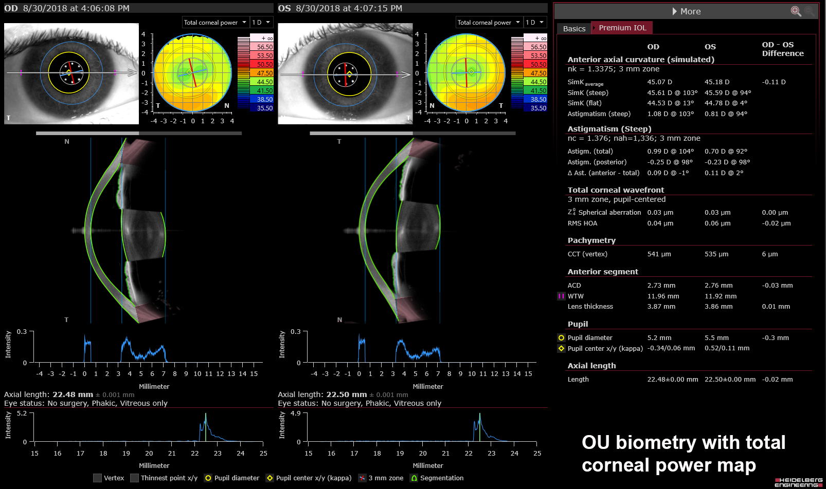 ANTERION ermöglicht auf Basis hochaufgelöster Swept-Source-OCT-Bilder die wichtigsten Vorderabschnittsuntersuchungen und -berechnungen in einer modularen, erweiterbaren Plattform. Die Cataract App bietet dabei sehr präzise Biometrie-Messungen, die für eine zuverlässige IOL-Berechnung erforderlich sind. Die neue Software der Cataract App verfügt nun auch über die Barrett-Formeln Universal II, Toric, True-K und True-K Toric. Operierende Augenärzte und Chirurgen können ihr ANTERION erweitern, um die Barrett-Formeln im integrierten Kalkulator für sphärische und torische IOLs zu nutzen und so ihren präoperativen Arbeitsablauf noch einfacher zu gestalten. Heidelberg Engineering hat zudem die Aufnahmegeschwindigkeit der Cataract App weiter verbessert: Die präzisen Biometrie-Messungen und umfassenden Hornhaut-Analysen sind jetzt in einem Aufnahmeschritt kombiniert. Dadurch wird die Aufnahmezeit für die Patienten erheblich verkürzt. Weitere Vorteile für Praxen und Kliniken bietet die neue Importfunktion für die IOL CON-Datenbank, die einen unkomplizierten Zugang zu den neuesten IOLs sowie auch optimierten IOL-Konstanten ermöglicht.
