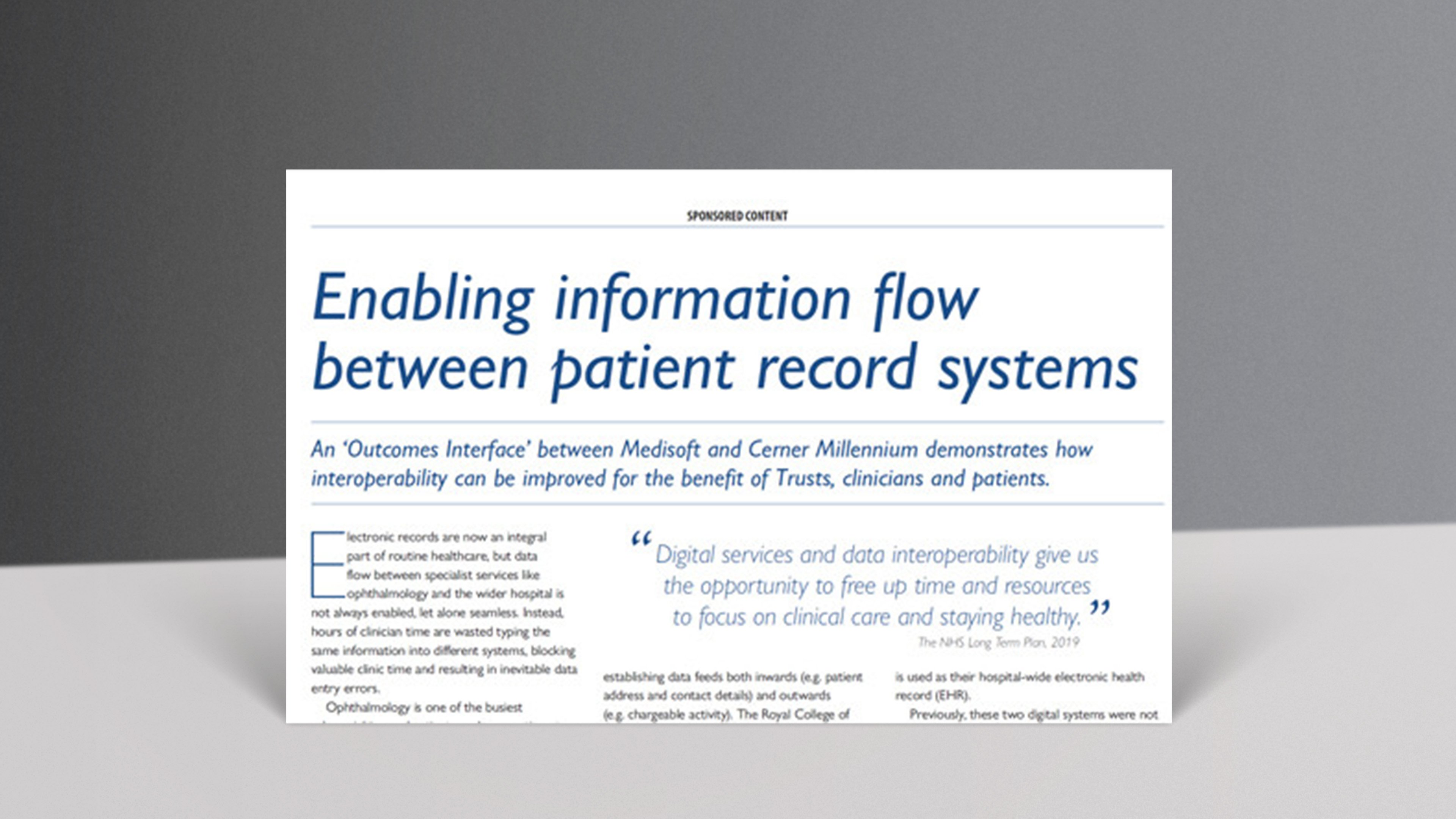 "An ‘Outcomes Interface’ between Medisoft and Cerner Millennium demonstrates how interoperability can be improved for the benefit of Trusts, clinicians and patients."
