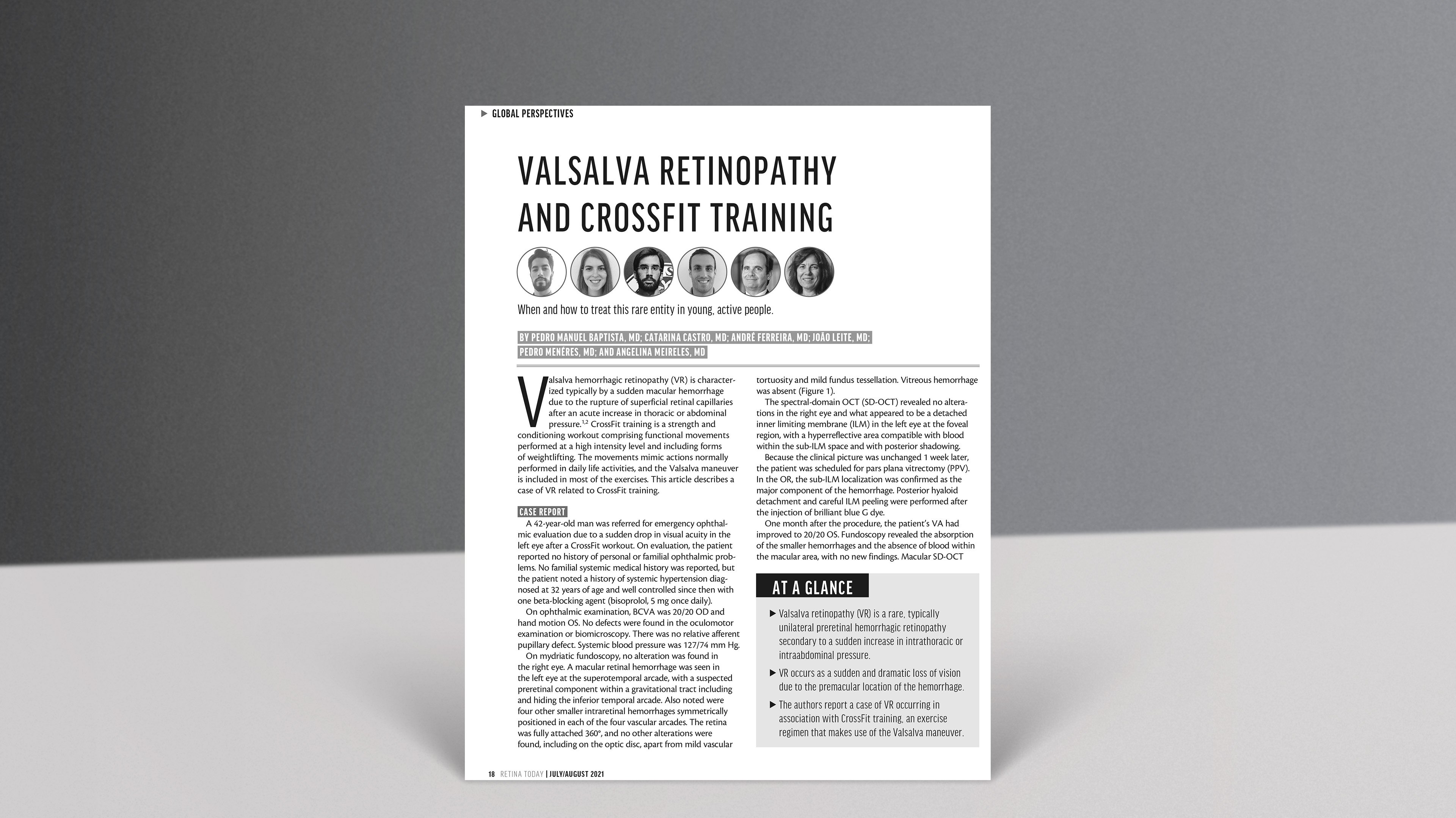 Die hämorrhagische Valsalva-Retinopathie (VR) ist typischerweise durch eine plötzliche Makulablutung charakterisiert, die infolge einer Ruptur der oberflächlichen Netzhautkapillaren nach akuten Druckanstieg in der Brust- oder Bauchhöhle auftritt. Dieser Artikel beschreibt einen Fall von VR im Zusammenhang mit CrossFit-Training.